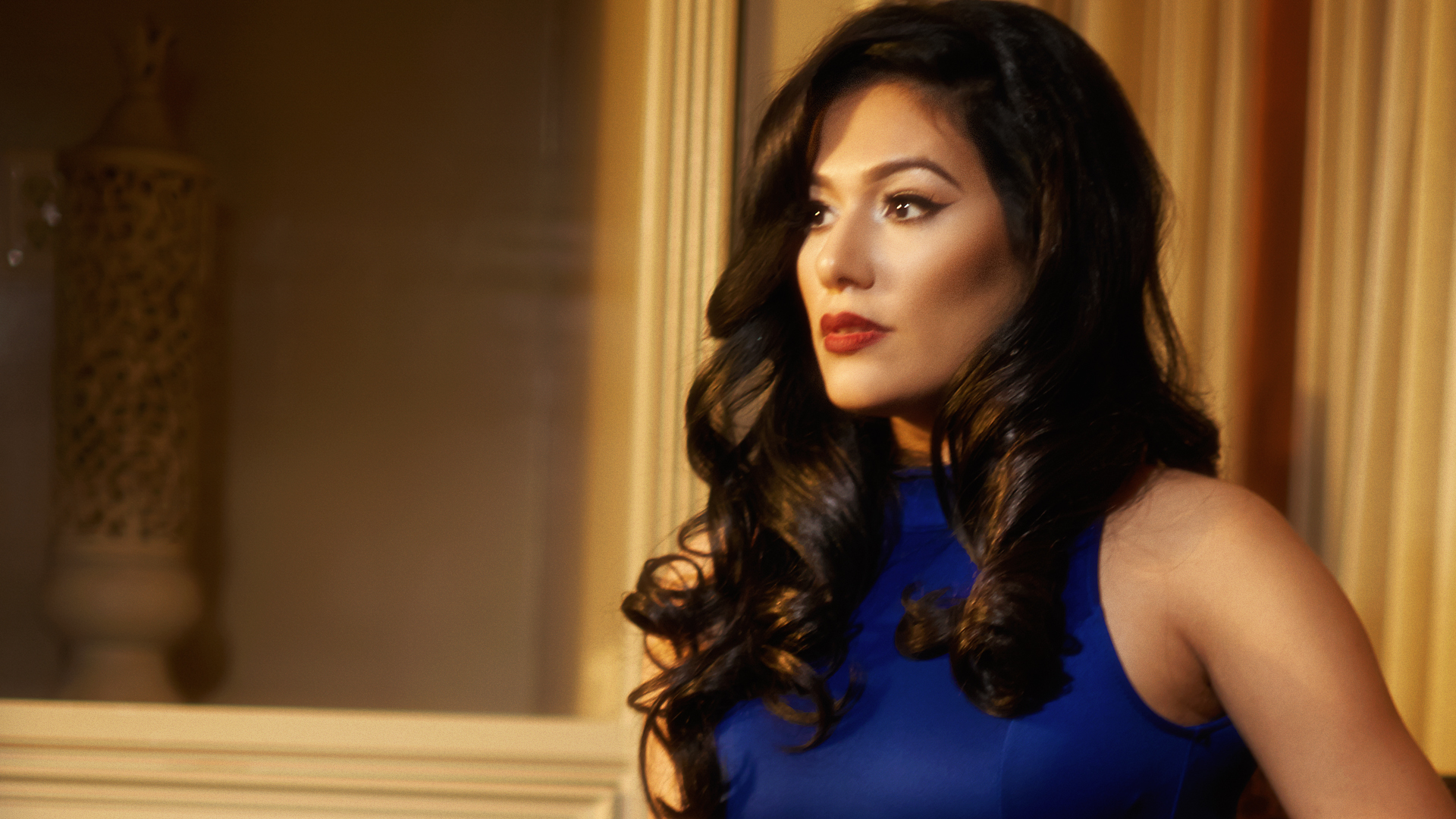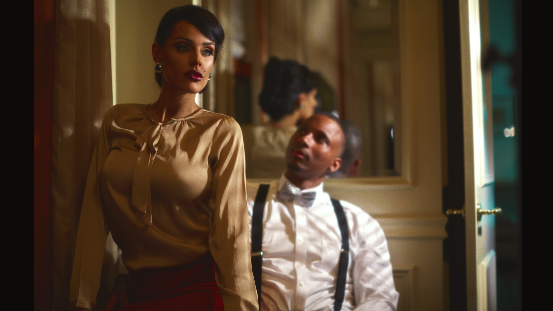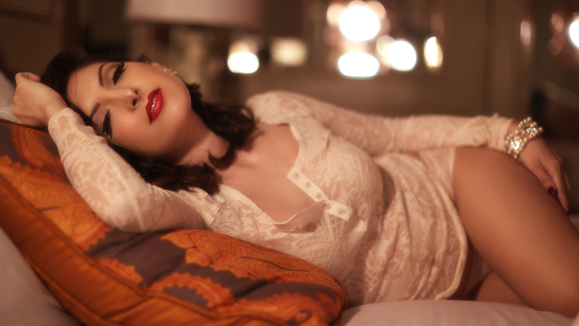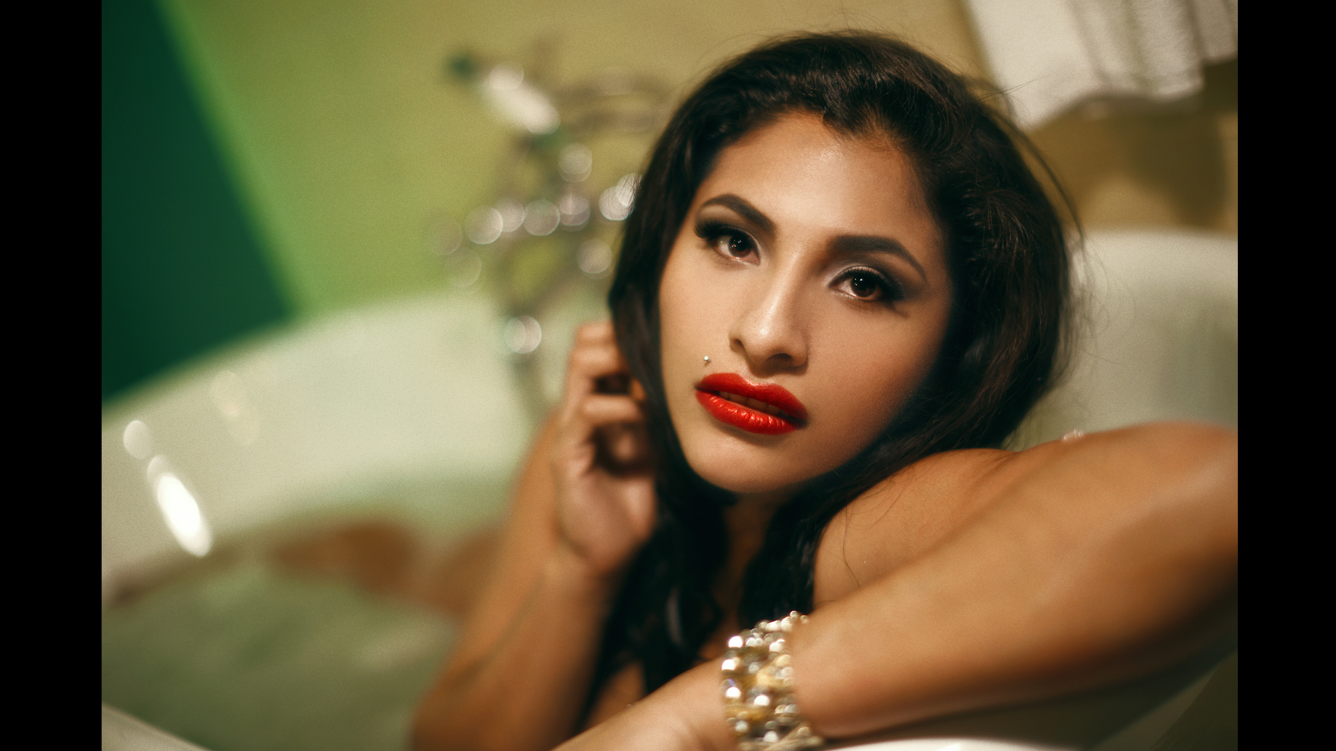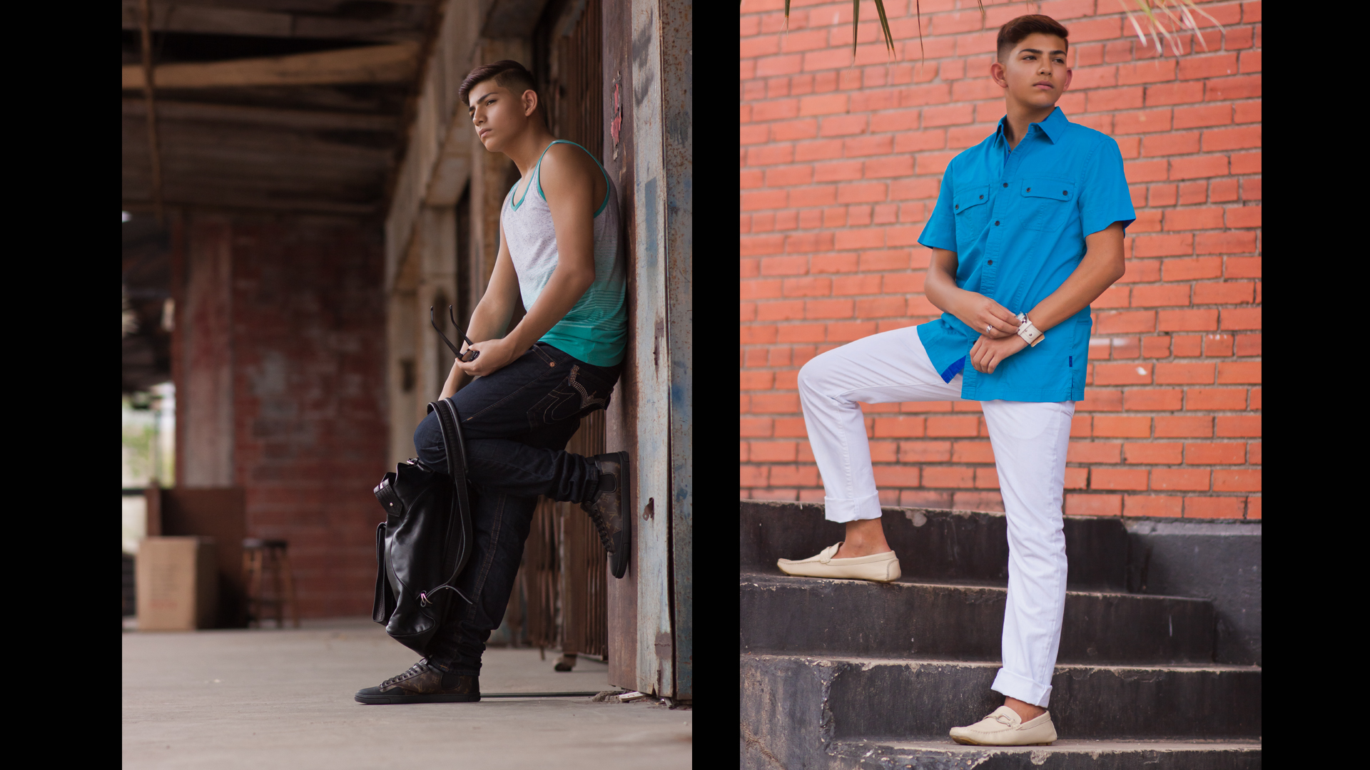 As a DP/Photographer/Production Artist I lite each set to give a different feel for the clients using continuous lighting, I directed them in each set to achieve the look we were going for. In the video I only stabilized it a bit, color corrected, added grain, and removed any exposed private parts from showing in the video.